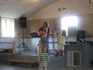 Sister Allen playing and signing - the kids would climb up and watch and then get down and dance!